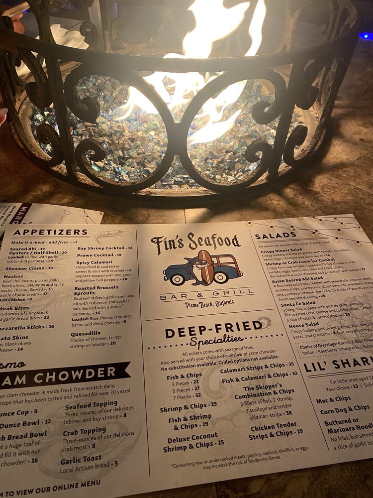 “ We really loved this place - came back two days in a row for lunch. The restaurant is clean, quiet, not too crowded, plays an excellent array of 90s country hits and the staff is very kind and friendly. The food is so good too! The clam chowder - get outta here I want to take it home in a thermos and sip it all day. I had the coconut shrimp and let me tell you as a self-proclaimed coconut shrimp connoisseur- these are great. Will definitely drop back in next time we are around pismo, but for now will be reppin' Fins with some of the awesome swag we took home. ”